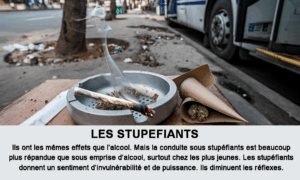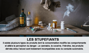RAPPEL : LA PRISE DE STUPEFIANTS OU D’ALCOOL ET LA CONDUITE AUTOMOBILE SONT INCOMPATIBLES. VOUS RISQUEZ VOTRE VIE ET CELLE DES AUTRES ET VOUS VOUS EXPOSEZ A DE LOURDES SANCTIONS.