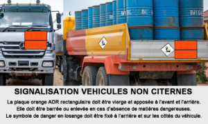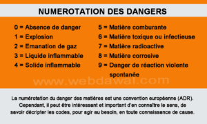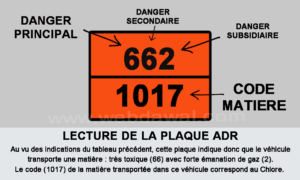 2 – Les plaques de code de danger qui sont de forme rectangulaire orange vierge ou avec le code de danger attribué à la matière transportée (ADR).