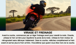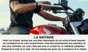 En tant que jeune conducteur de moto, vous devez prendre le temps de maîtriser son allure, son poids, son volume, etc. Toutes les motos ne se valent pas et ne se conduisent pas de la même façon dans des situations identiques. Apprenez patiemment à « écouter » et à faire « corps » avec votre monture.